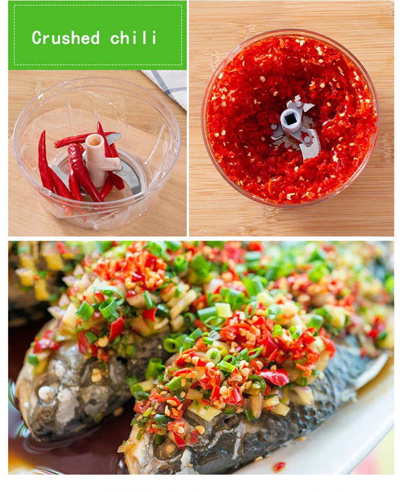 - Portable Multi Chopper and Blender: Manual universal chopper with a capacity of 900 ml, mixing blades that are also included for beating eggs, panda etc. They are very suitable for small kitchens, caravans, travel and camping.